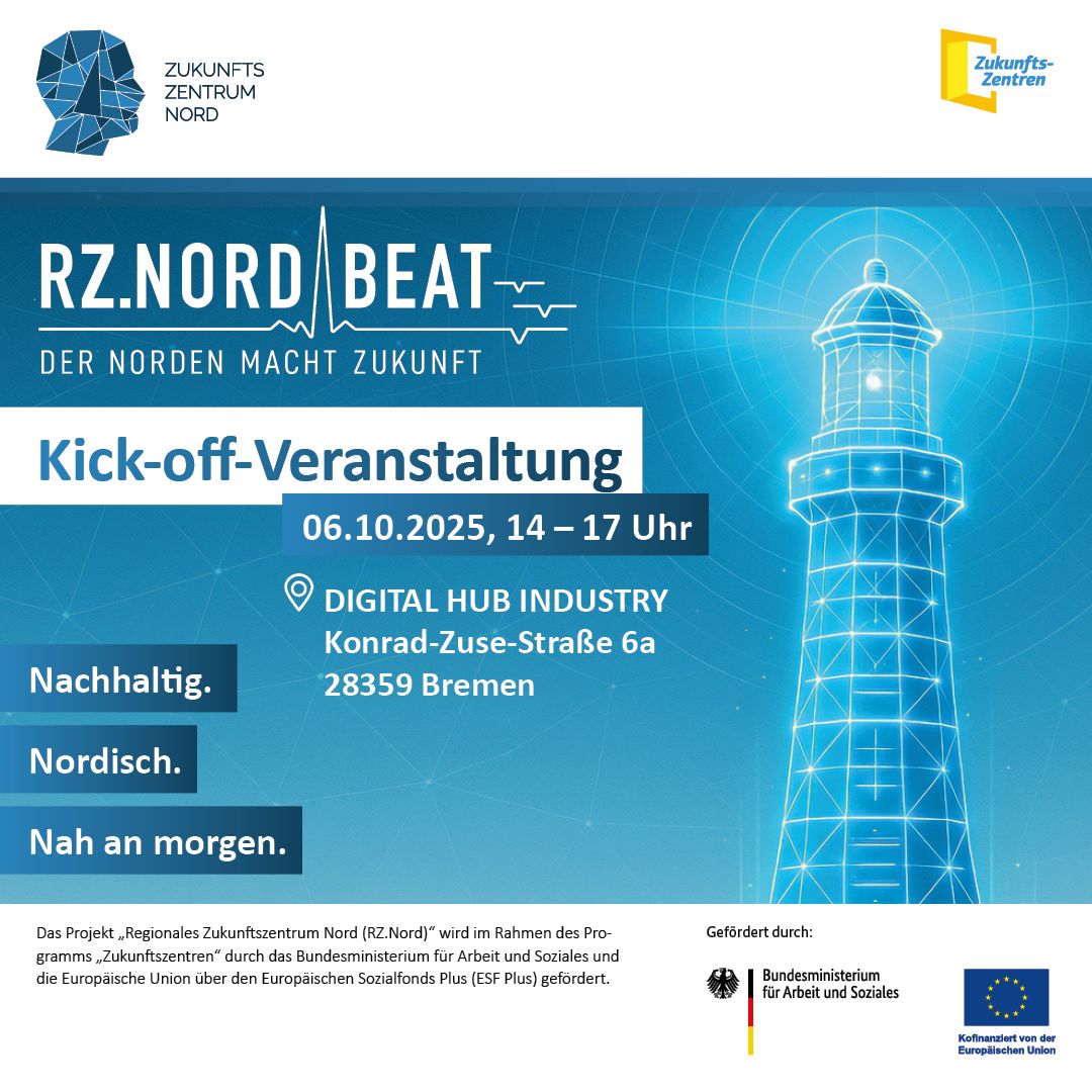 Auftakt einer norddeutschen Themenwoche: Im DIGITAL HUB INDUSTRY Bremen startet RZ.NORDBEAT mit Keynote, Talk und Workshops rund um KI, Nachhaltigkeit und soziale Innovation. Die Veranstaltung bringt Unternehmen, Start-ups und Forschung zusammen, um neue Ideen für die digitale Transformation zu entwickeln.